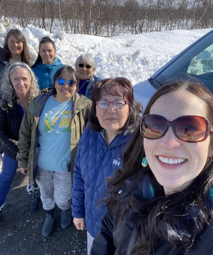 From back on: Shelley Tulloch (University of Winnipeg), Colleen Pottle (Memorial U), Sylvia Moore (Memorial U), Sarah Townley (Torngat Secretariat), Doris Dicker (Memorial U), Ola Andersen (Memorial U), and Shannon Dicker (NL School Board). Photographer: Shannon Dicker