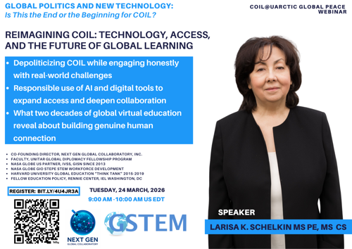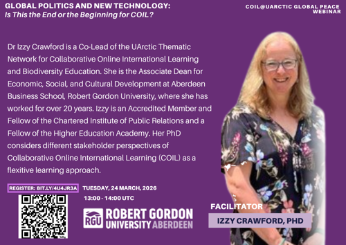 The COIL@UArctic Global Peace Webinar series will continue this month with a session titled “Global Politics and New Technology: Is This the End or the Beginning for COIL?” The event will take place online on March 24, 2026.